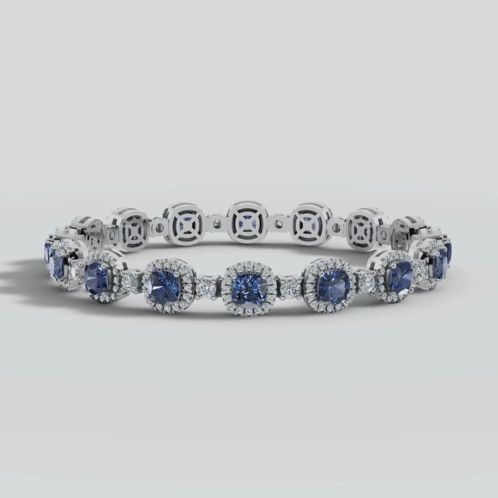 Elevate your wrist game with our exquisite diamond and sapphire bracelet—a true embodiment of modern luxury. Crafted with precision, this bracelet seamlessly blends timeless design with eco-conscious materials. Available in white gold, yellow gold, rose gold as well as platinum. Choose between lab grown or natural diamonds, each reflecting brilliance and ethical elegance.