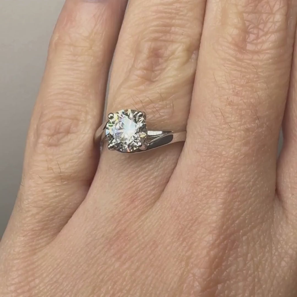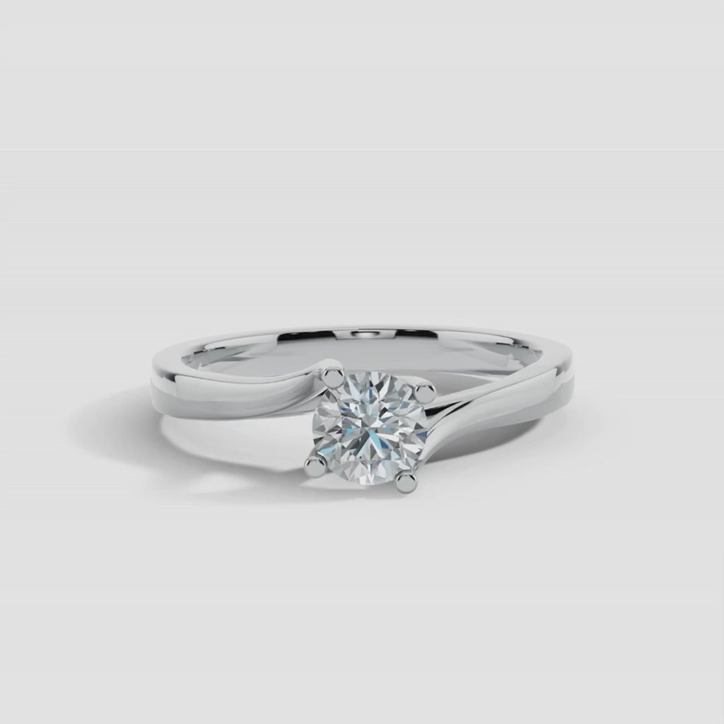 This exquisite solitaire ring embodies timeless elegance with a modern twist. Showcasing a stunning 2-carat round diamond at its heart, the design is elevated by a gracefully twisted diamond shoulder, adding depth and brilliance. Set in a sleek platinum band, this piece seamlessly blends classic sophistication with contemporary allure.