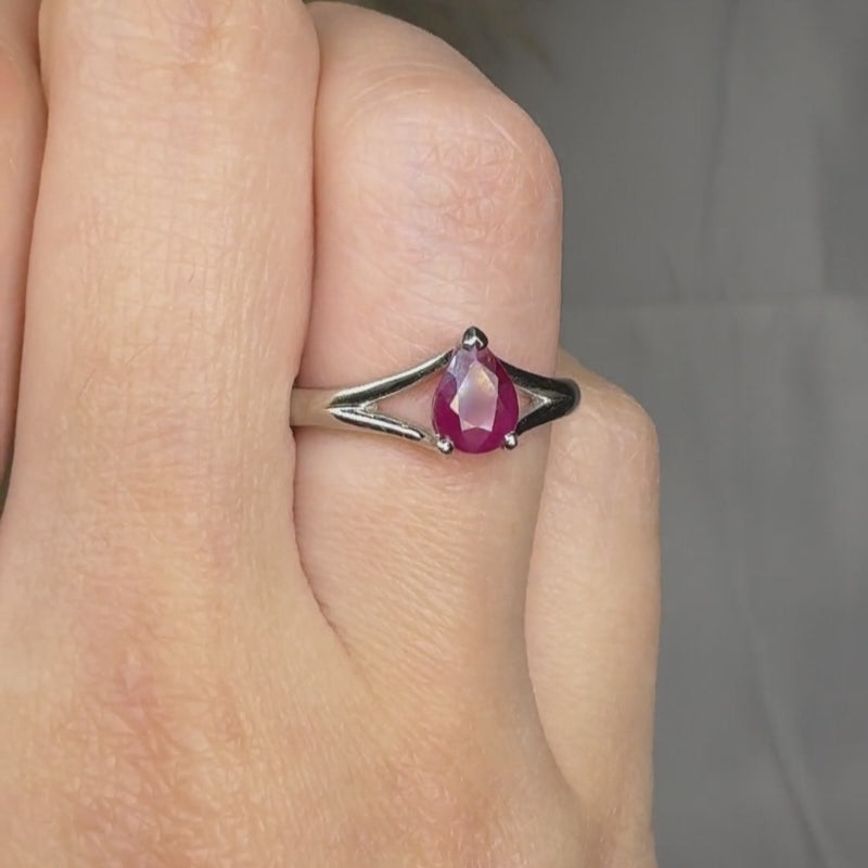 0.58-carat pear-cut ruby, offering a striking shape with a rich, captivating hue.